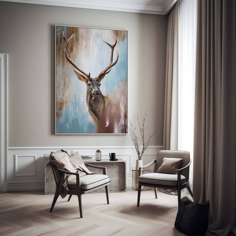 Hert 'Braveheart' op schildersdoek met een aluminium frame.